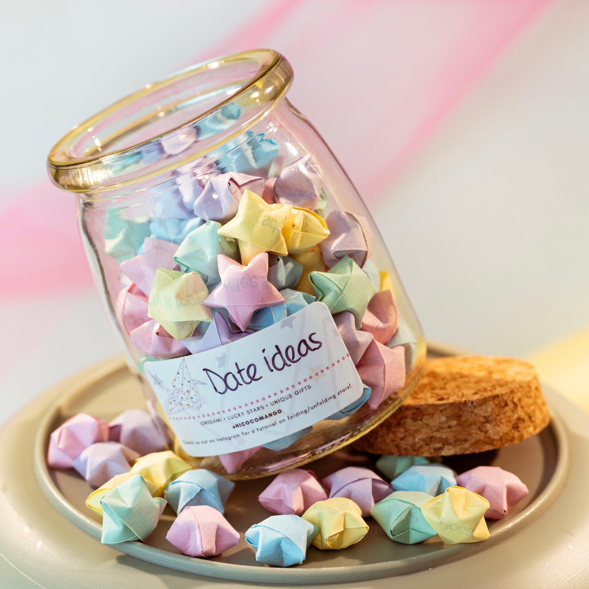 This Lucky Star jar is full of creative date night ideas to help you out whenever you don’t know what to do. Each star contains one date night idea.